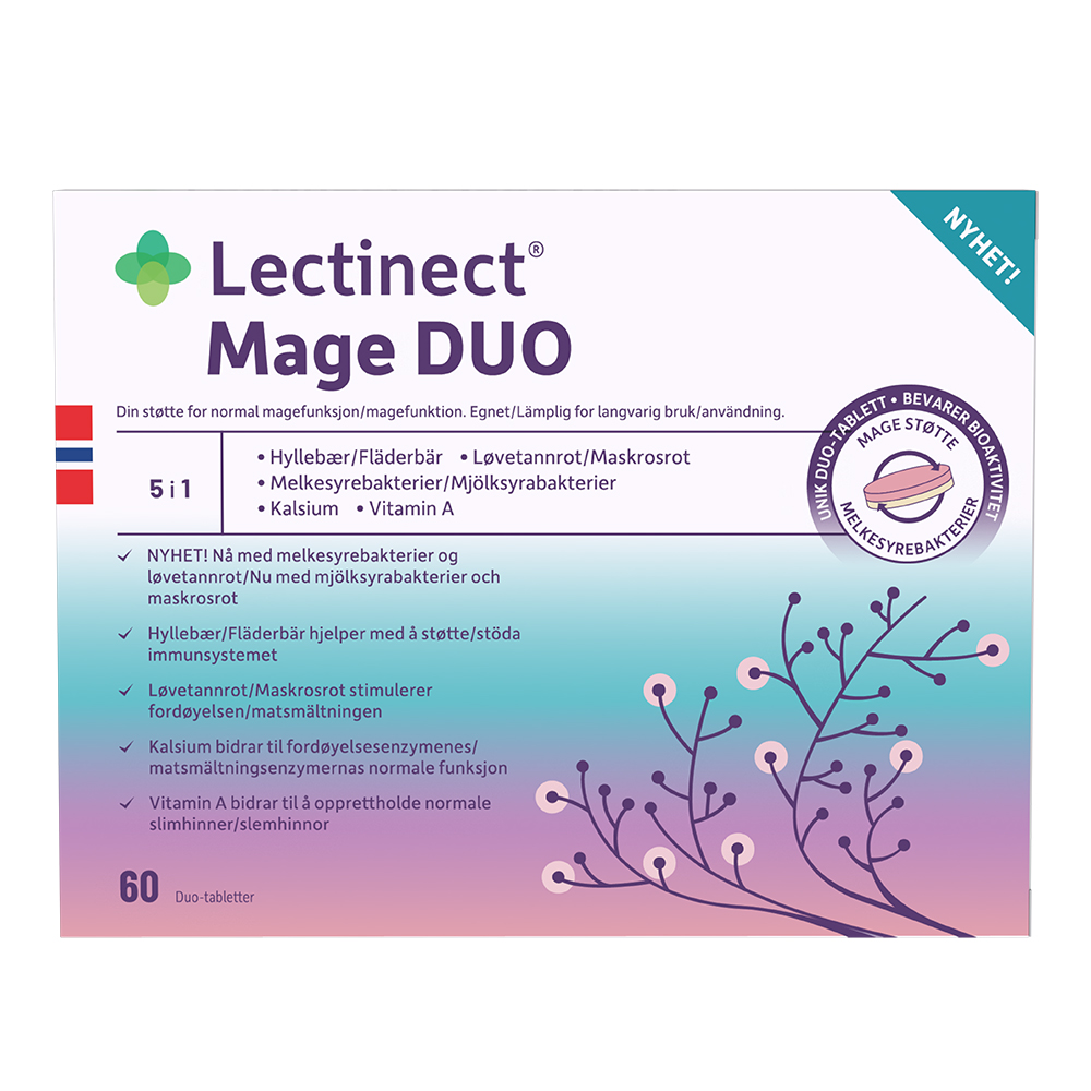 Lectinect Mage DUO representerer et betydelig fremskritt innen urtetilskudd for magen, og bygger videre på den velprøvde suksessen til Norges mest solgte kosttilskudd for magehelse siden 2007. Gjennom innovativ to-lags teknologi kombinerer det urteekstrakter med levende melkesyrebakterier i en enkelt tablett uten å kompromittere bioaktiviteten til noen av komponentene. Formelen behandler mageplager fra flere vinkler – ved å støtte immunforsvaret, fettfordøyelsen, fordøyelsesenzymer, mageslimhinnen og tarmfloraen – noe som gjør det til den mest omfattende støtten på markedet.